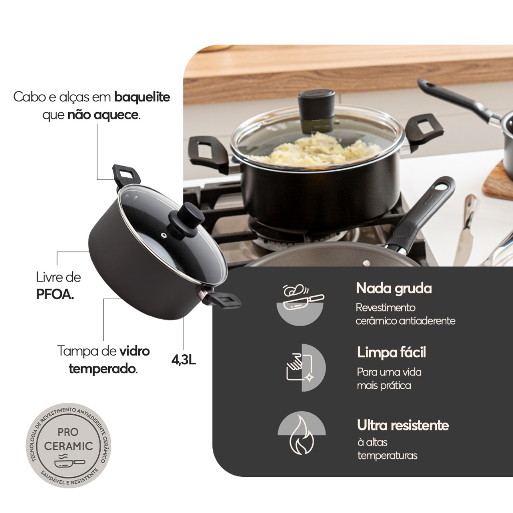Caçarola com Tampa Brinox Ceramic Life Naturalle Ø24cm 4,3L Preto Ebony