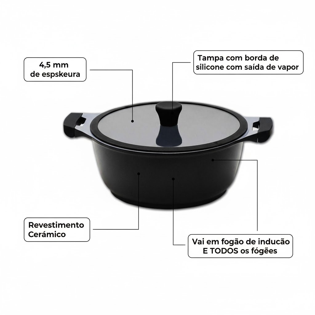Caçarola Ecolumi Premium 4.5 20cm Preta C/ Revest. Cerâmico