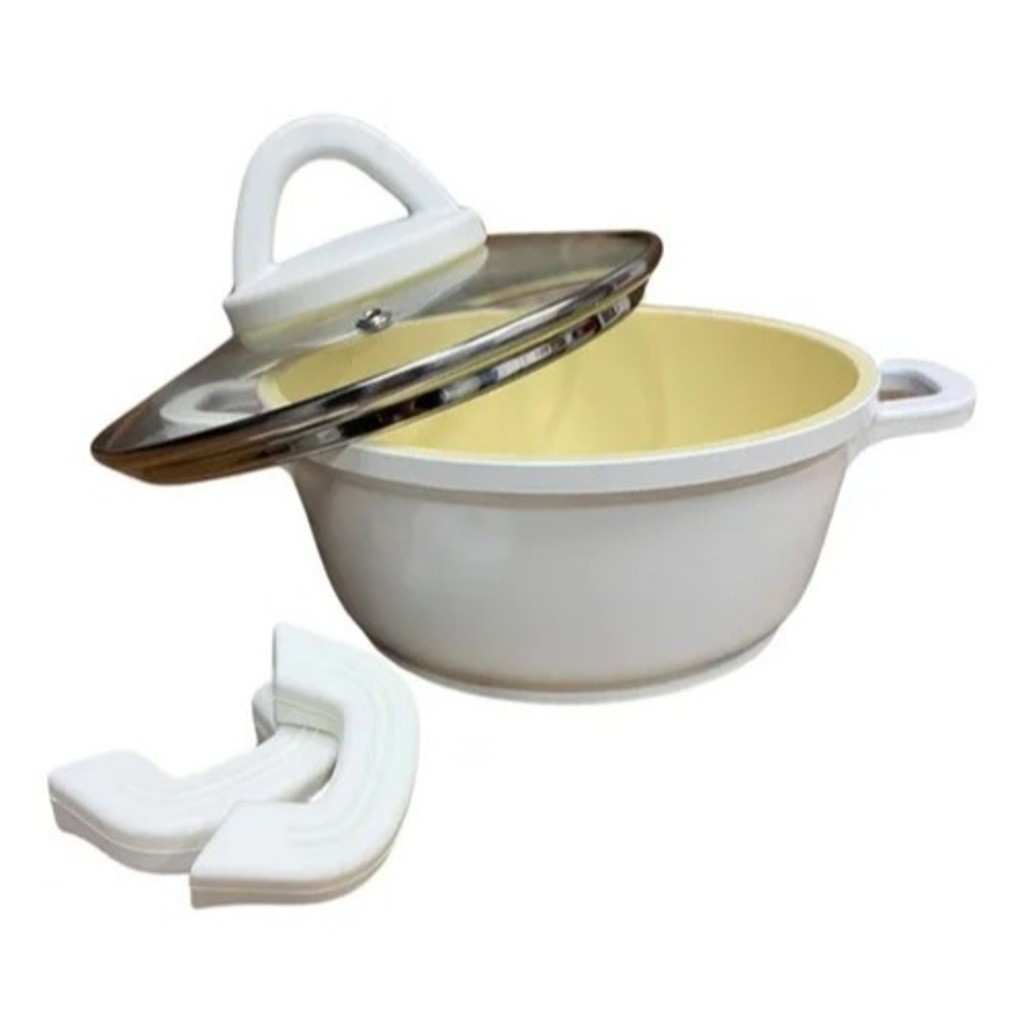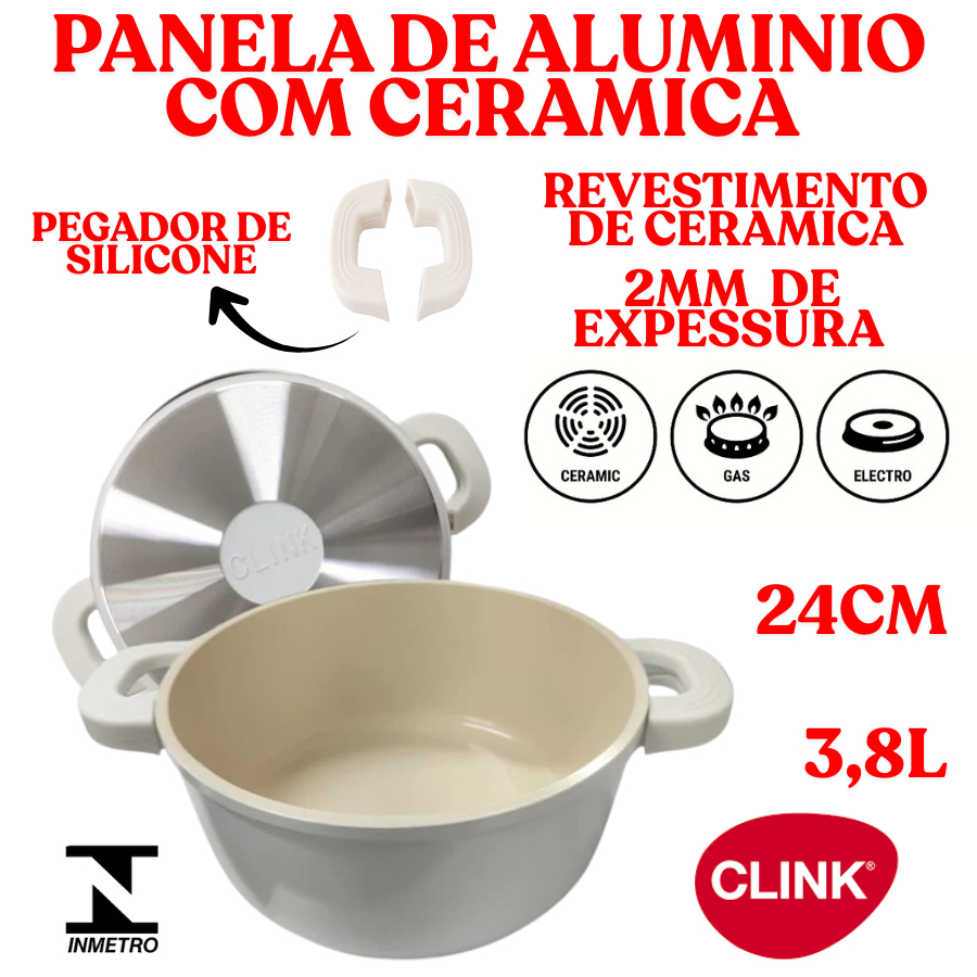 Caçarola Panela Aluminio 24CM 3,8L Revestido De Ceramica Com Aluminio Antiaderente Branca Clink 2MM