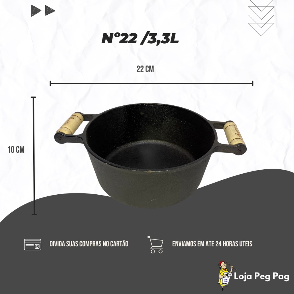Caçarola alça de Madeira com tampa de Ferro