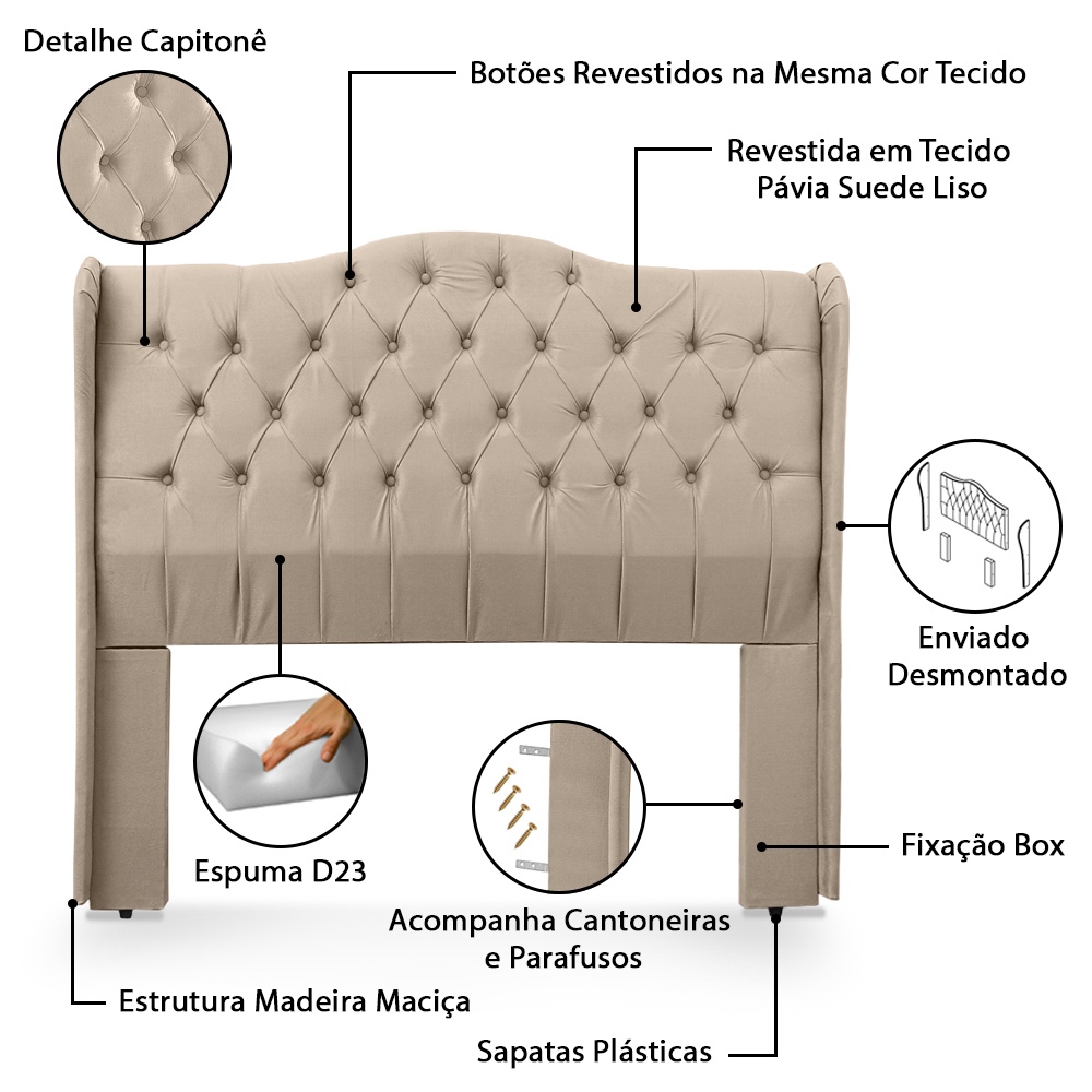 Cabeceira Capitonê Estofada Dubai Para Cama Box Queen 160cm Com Pés Fixação Box - LH Móveis