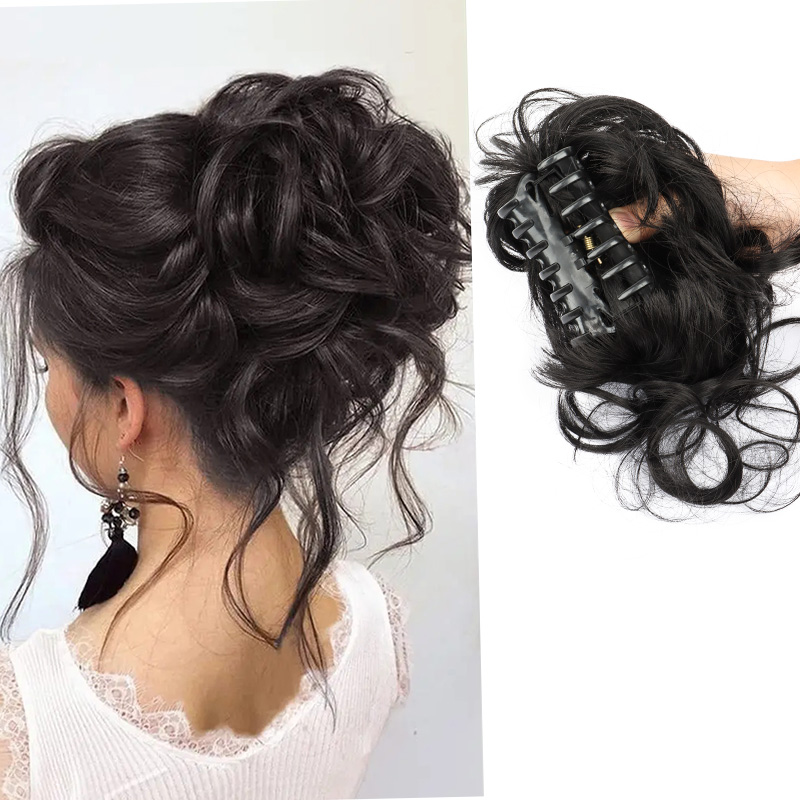 Cabelo De Coque Encaracolado Bagunçado Sintético Com Clipe De Garra Fofo Chignon Peruca De Para Mulheres