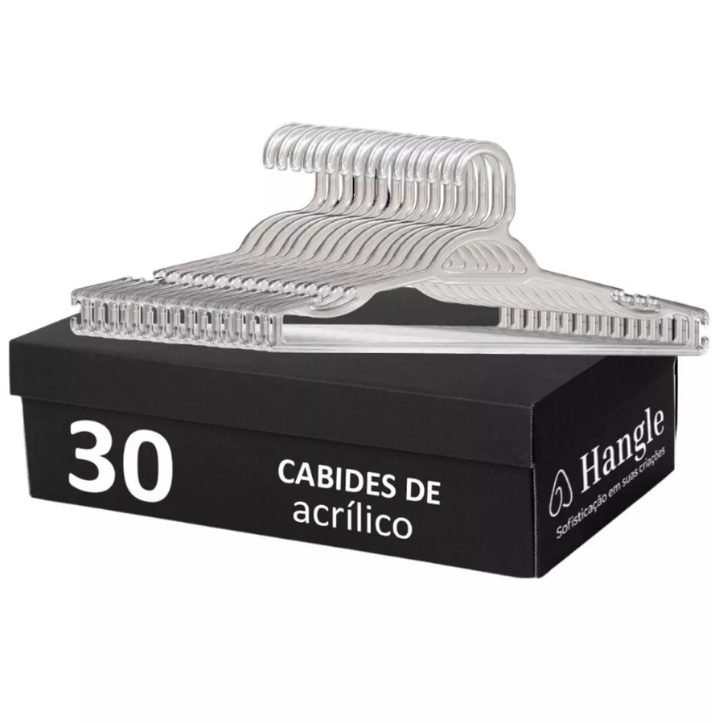Cabide Adulto Transparente AcrÍlico para Roupas, Closet e Loja Kit Premium Resistente