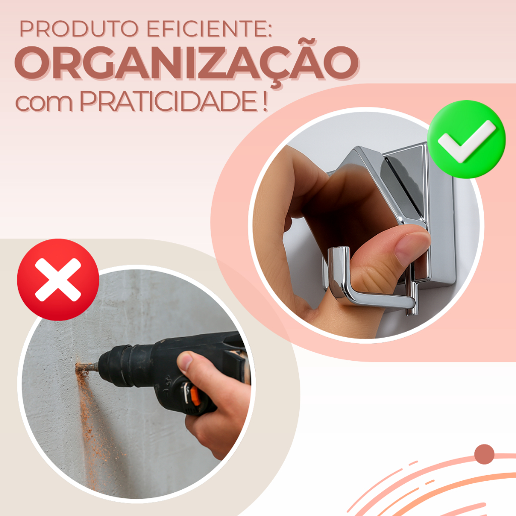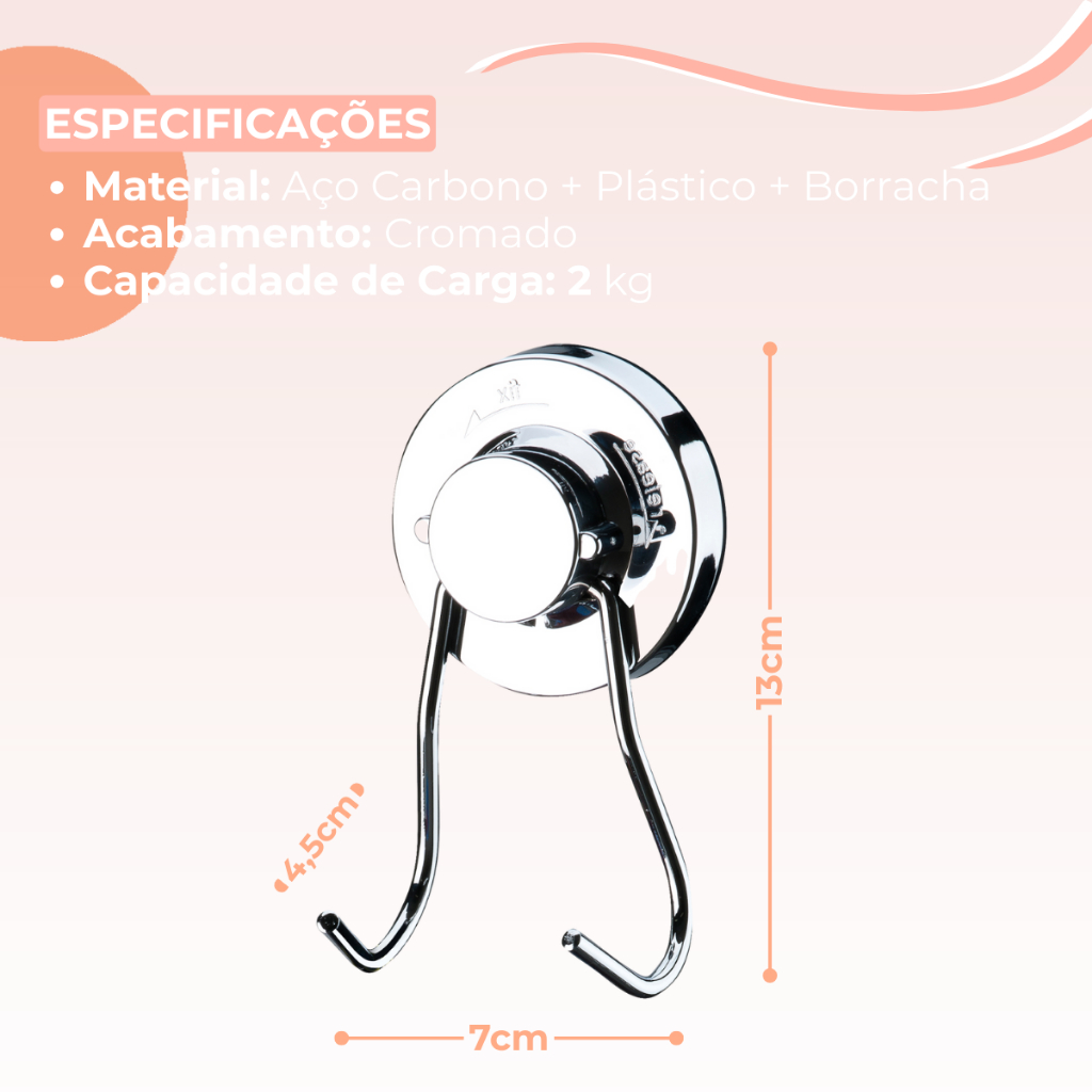 Cabide Gancho Duplo Porta Toalha Suporte Fixação Ventosa Sem Furo