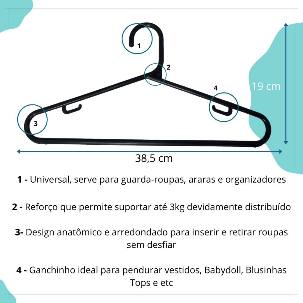 Cabide Preto adulto 60 Unidades