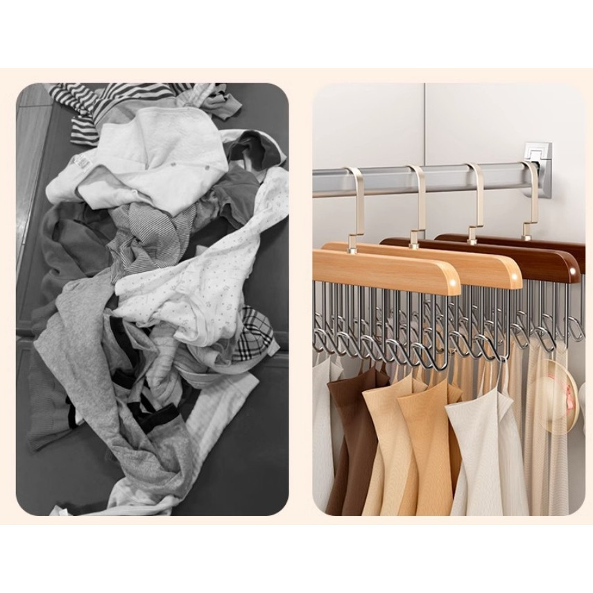 Cabide de Madeira Multi-uso Para Cintos Gravatas Cachecóis Sutiãs Colares Organizador Com 8 Ganchos