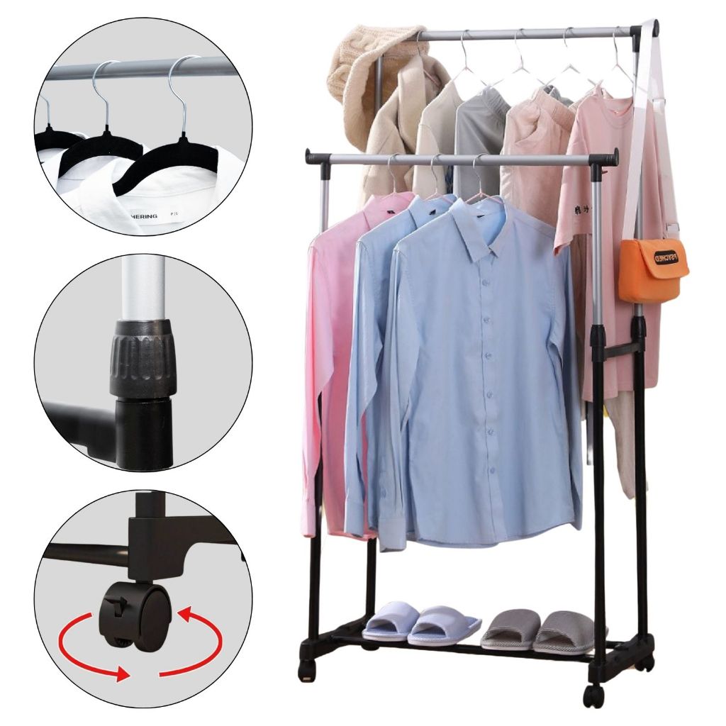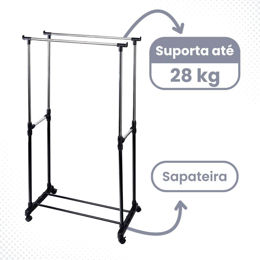 Cabideiro De Chão Arara Organizador De Roupas Com Sapateira Rodinhas Regulável