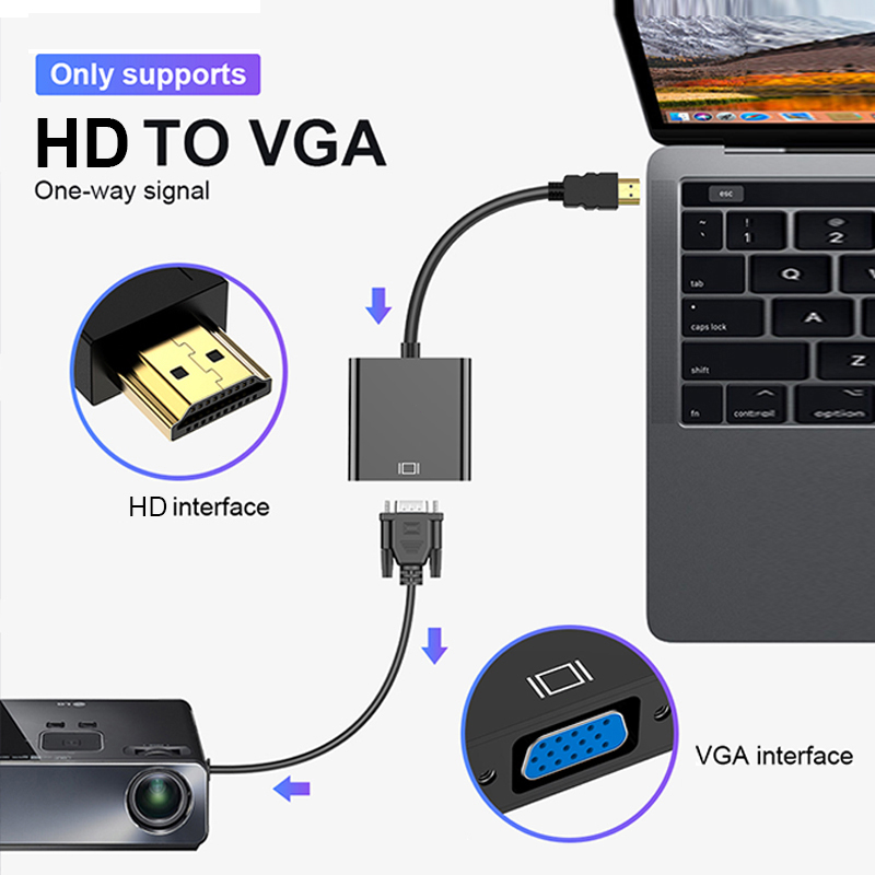 Cabo Adaptador HDMI para VGA com Áudio, Conversor de Porta Macho para Fêmea