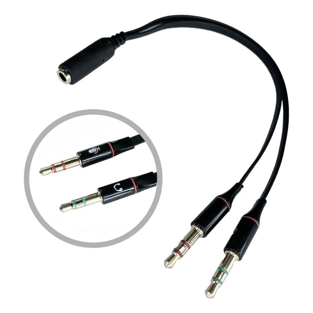 Cabo Adaptador Headphone P3 Para Headset (2 P2 Audio E Mic)