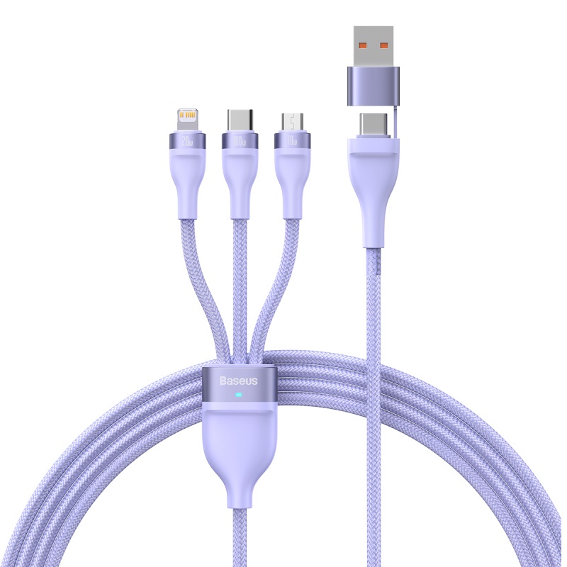 Cabo De Carregamento Rápido Baseus 100W Flash Series 3 Em 2 C + U Para M + L +