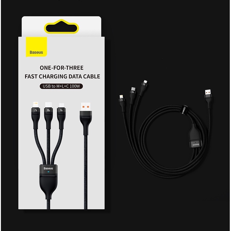 Cabo De Carregamento Rápido Tipo C Baseus 100W 3 Em 1 USB Para Phone