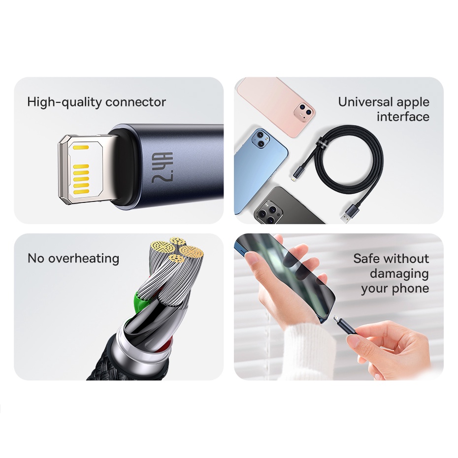 Cabo De Dados USB Para Iluminação Baseus iP 13 12 11 Pro Max 8X