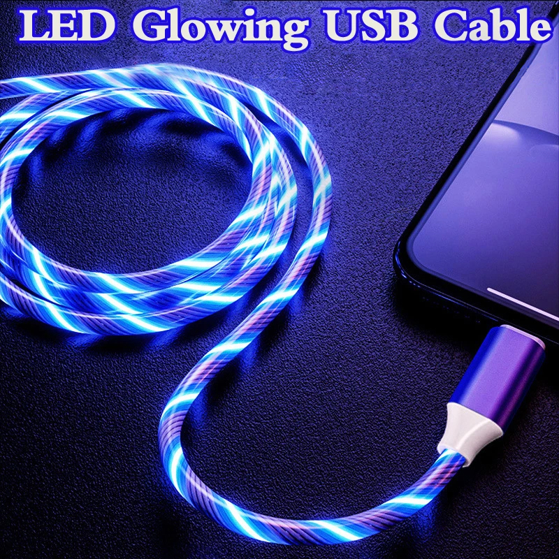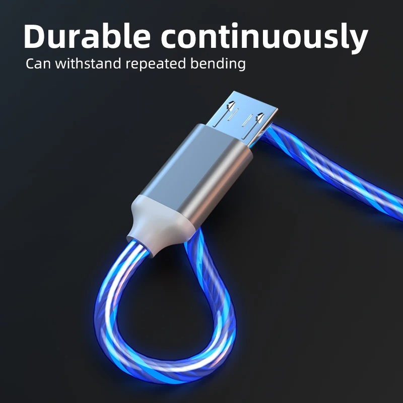 Cabo De Recarga Rápida Com Brilho Fluxo Luminoso Micro USB LED Para Carregador De Acessórios Telefone Samsung Xiaomi