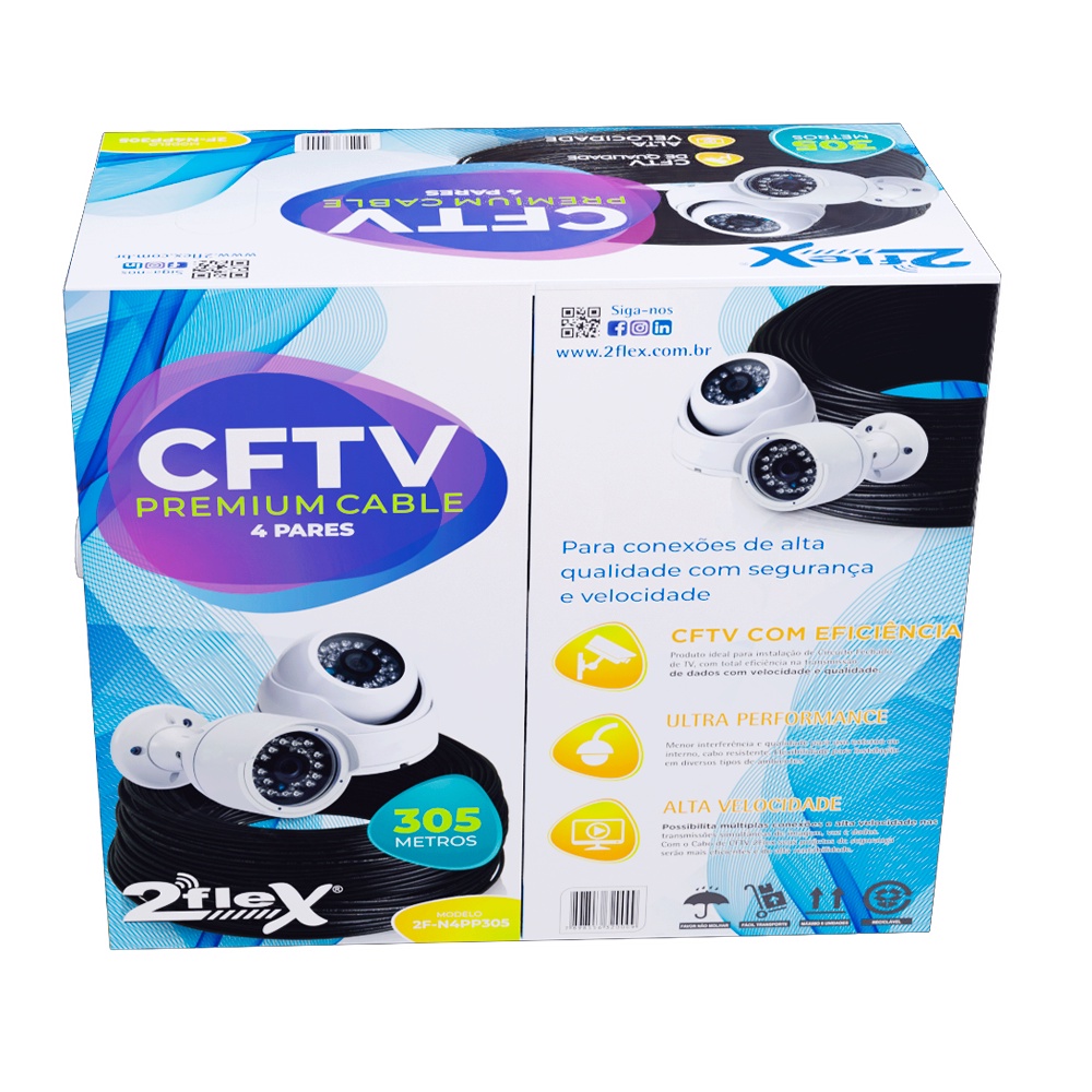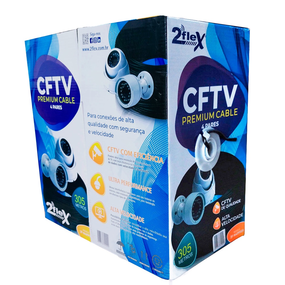 Cabo De Rede Preto Cftv Cat5e Premium 4 Pares 305 M Utp