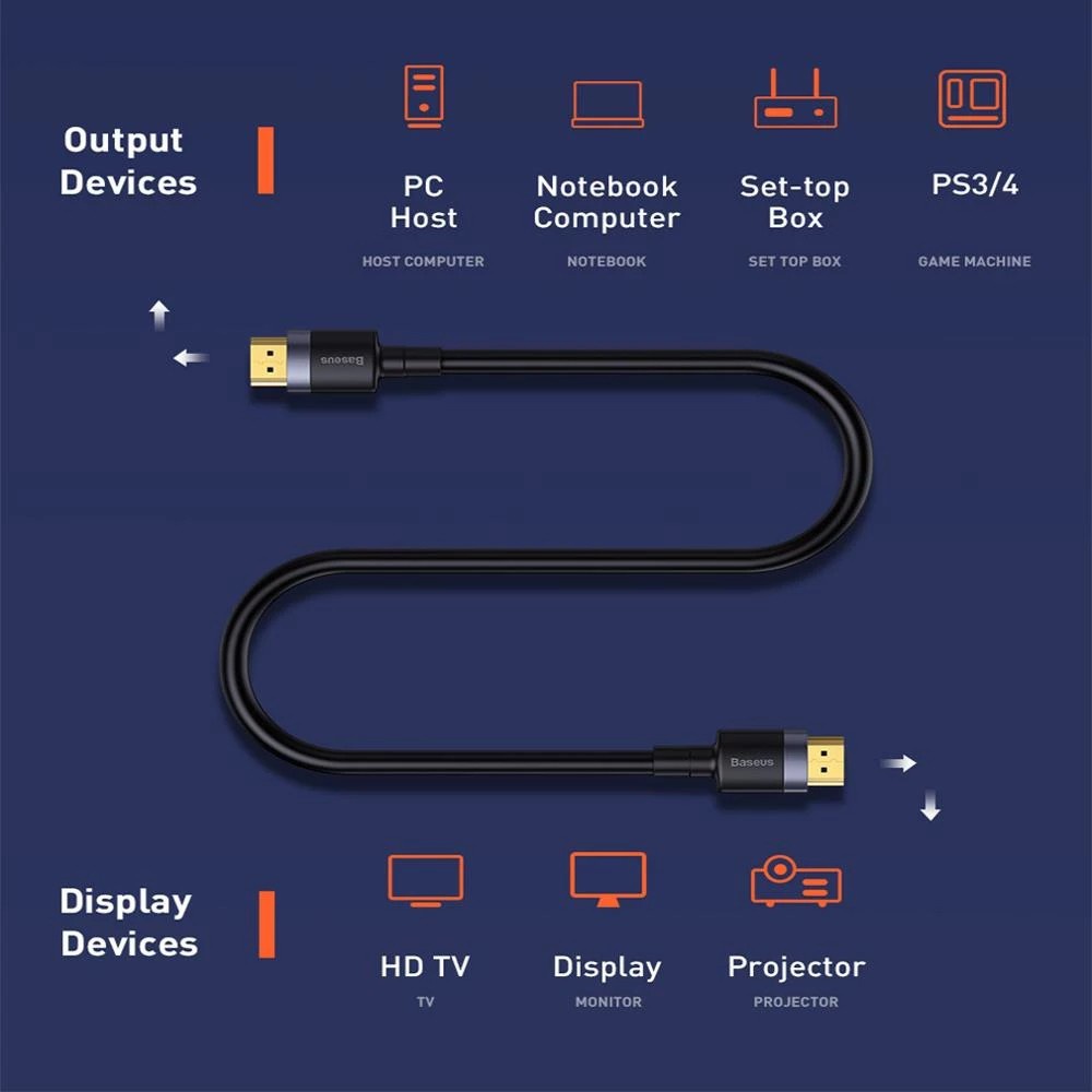 Cabo Hdmi Baseus Hd Para Interruptor De Tv Ps4 4k Hd Para 4k / Splitter 4k 60hz Ultra Hd