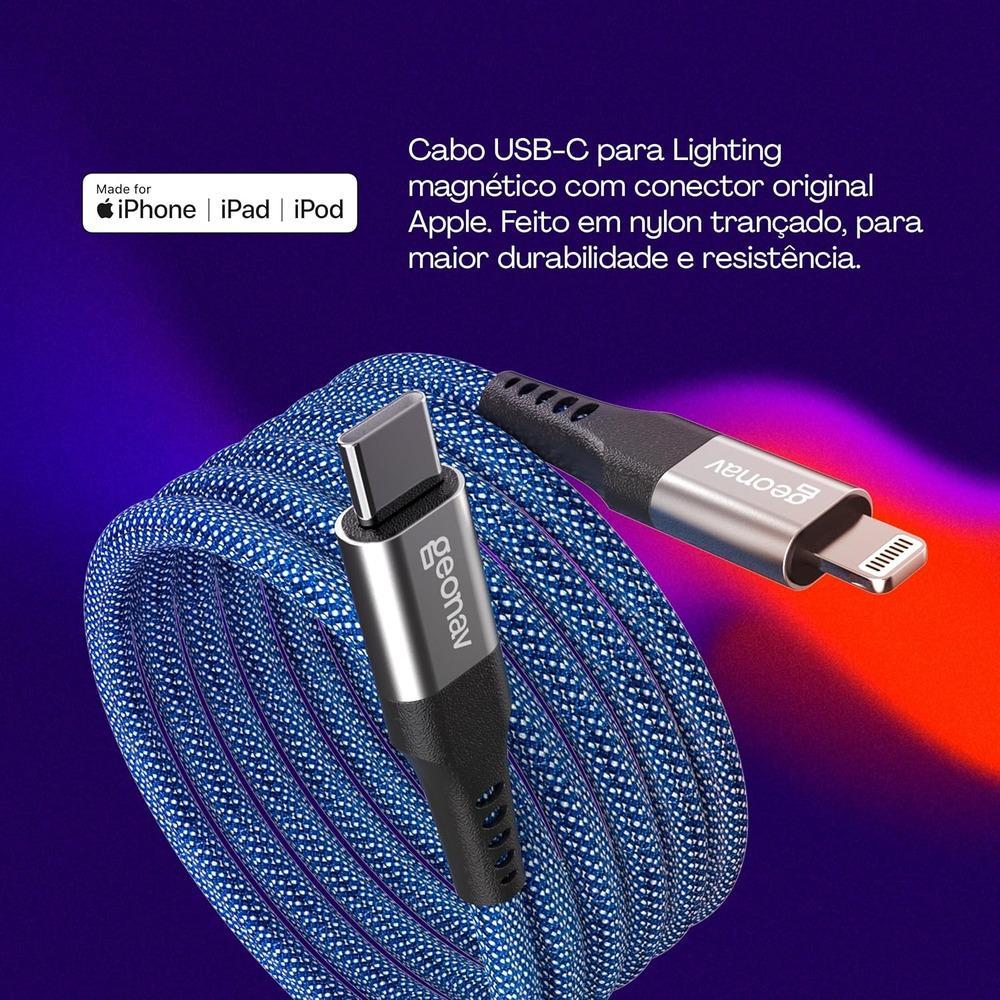 Cabo Magnetico Usb-C P/Lightning 2.0 Nylon Geonav Liuc03Mag