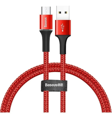 Cabo Micro Usb Baseus Com Led Original 1mt Vermelho 3a Turbo