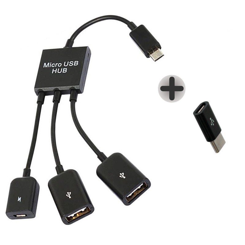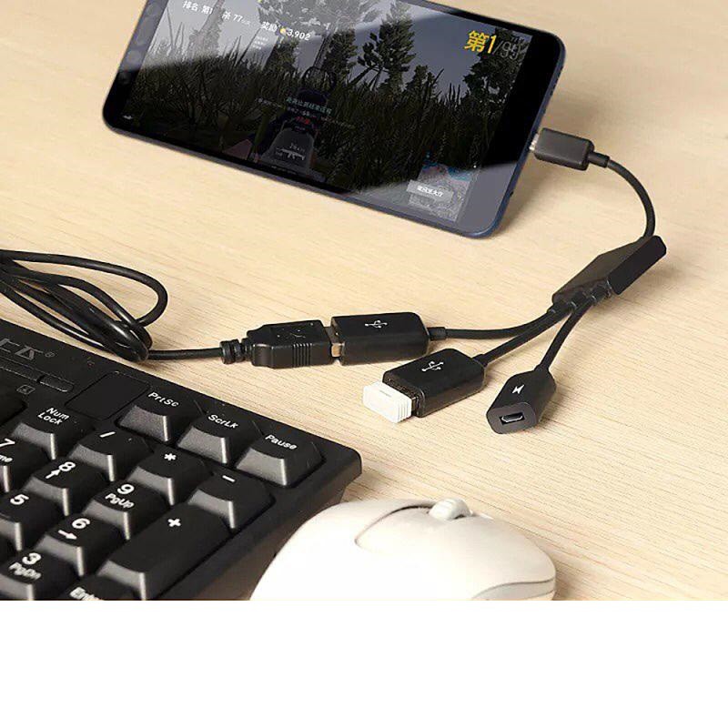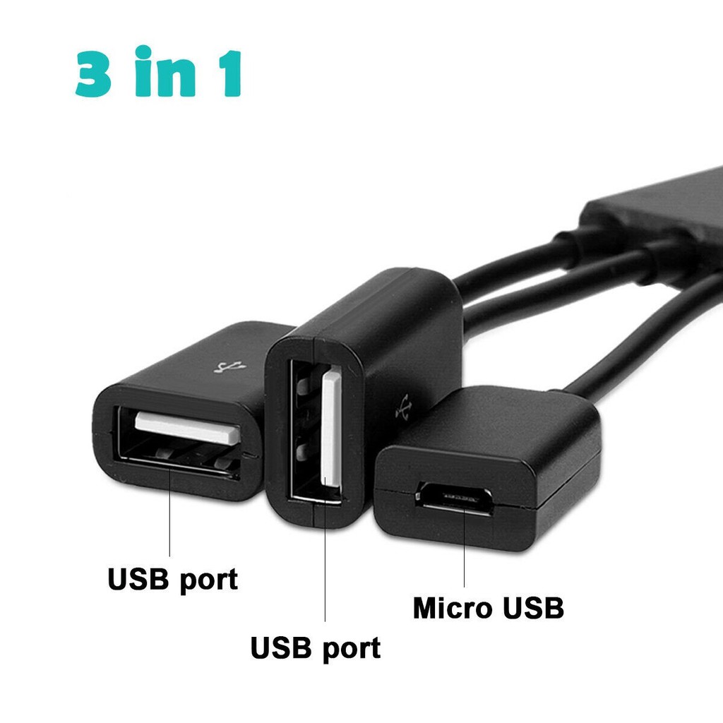 Cabo OTG 2 portas USB - Cabo OTG duplo - Hub OTG 3 em 1 - Mobilador FF
