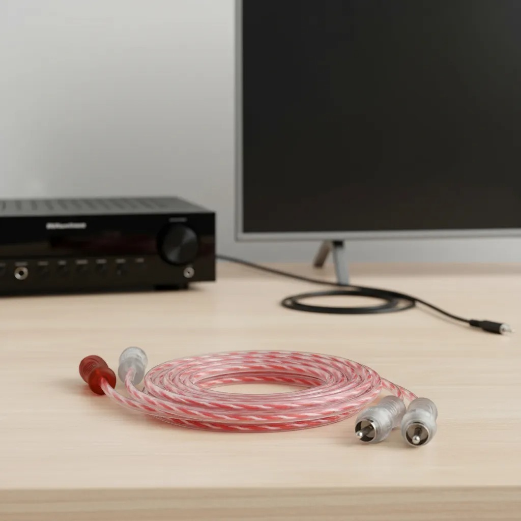 Cabo RCA 1 Metro Blindado Vermelho e Prata para Módulo Potência Amplificador Mesa de Som