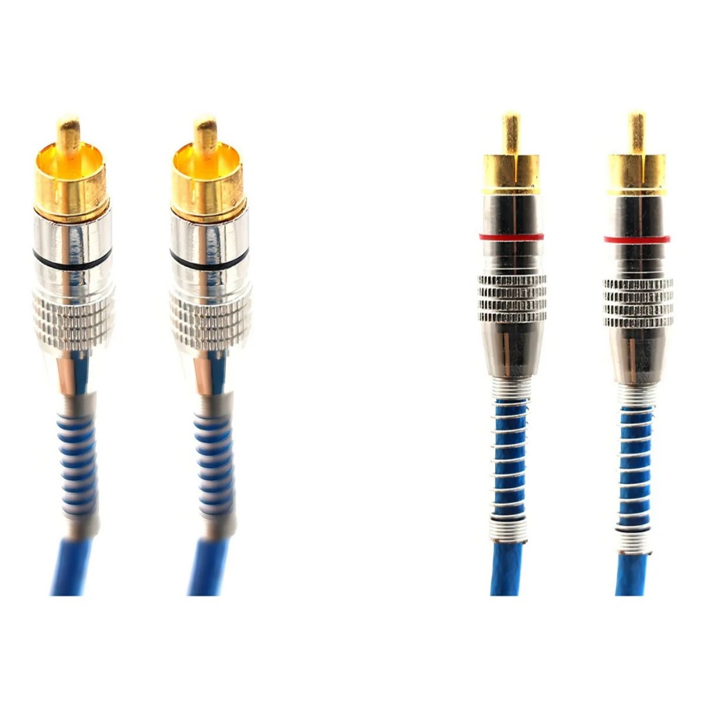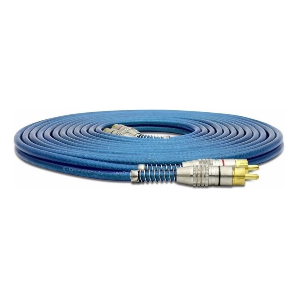 Cabo RCA 5 Metros Blindado Azul para Módulo Potência Amplificador Mesa de Som
