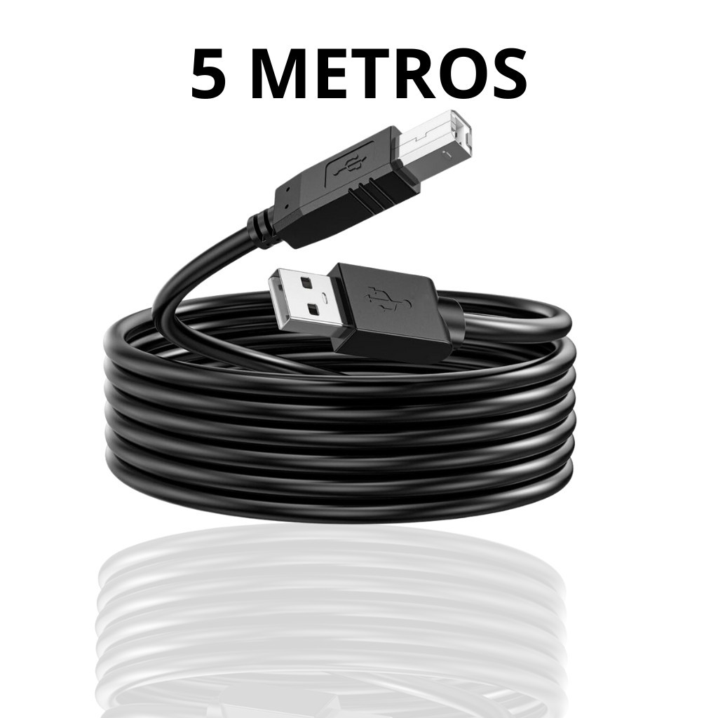 Cabo USB 2.0 Tipo B 5 Metros Para Impressora HP Epson Canon Brother Samsung Xerox Kyocera Lexmark Ricoh Elgin Sharp