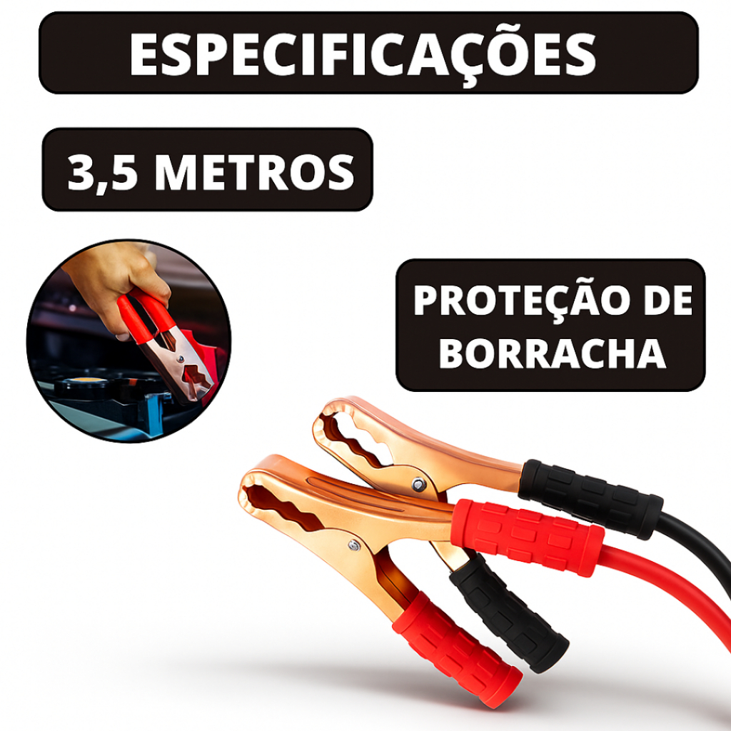 Cabo de Chupeta Para Bateria de Carro 1.000 ou 2.000 Amperes 3,5 Metros