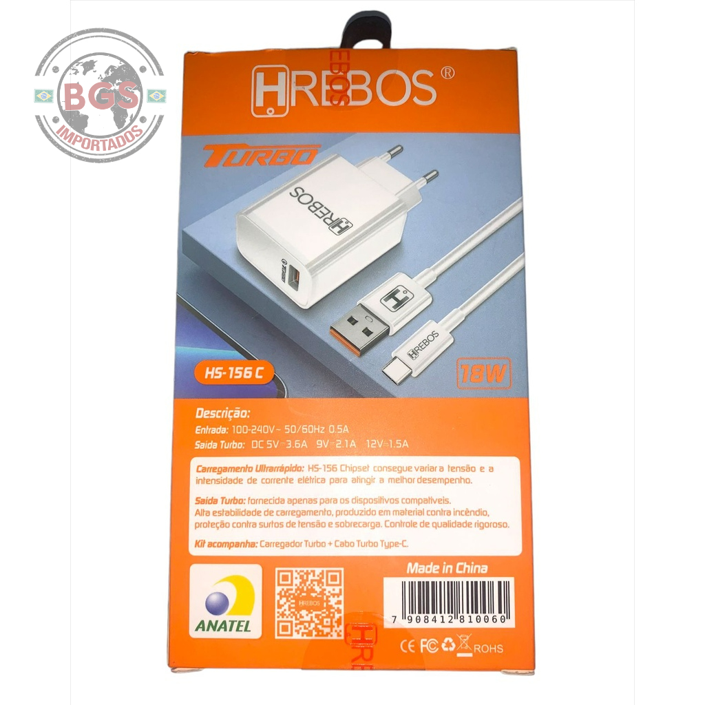Cabo e Carregador Tomada Fonte Turbo 18W Anatel Original Tipo C V8 Micro USB