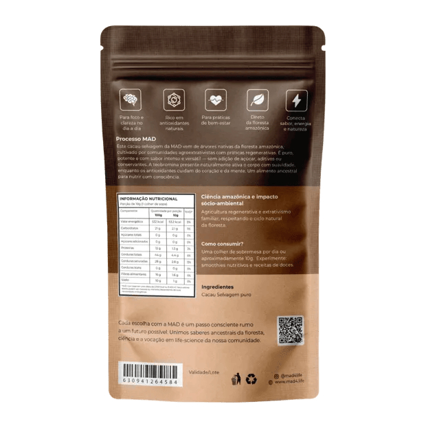 Cacau Selvagem da Amazônia em Pó 100g MAD | Cacau Puro Sem Açúcar | Antioxidante Natural