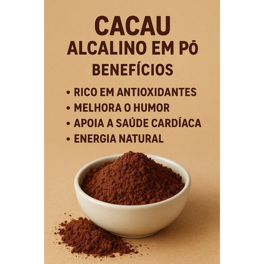 Cacau em Pó Alcalino 100% Puro 1kg Alta Qualidade Natural Sem Glúten Solúvel Sem Açúcar Sem Aditivos