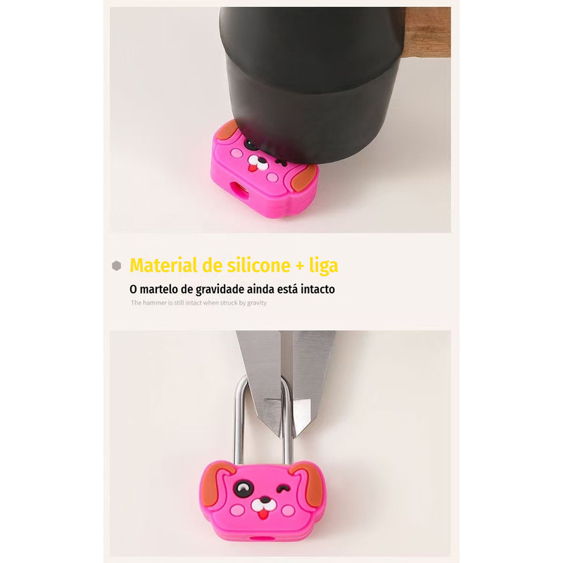 Cadeado Fofo Cartoon em Silicone Núcleo de Metal Cores Sortidas p/ Mochila, Estojo, Gaveta e Viagem