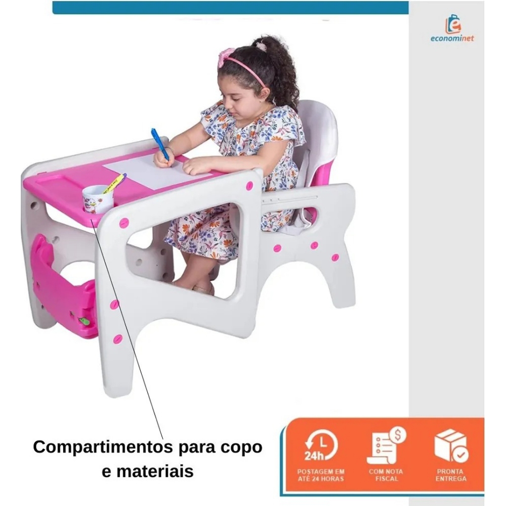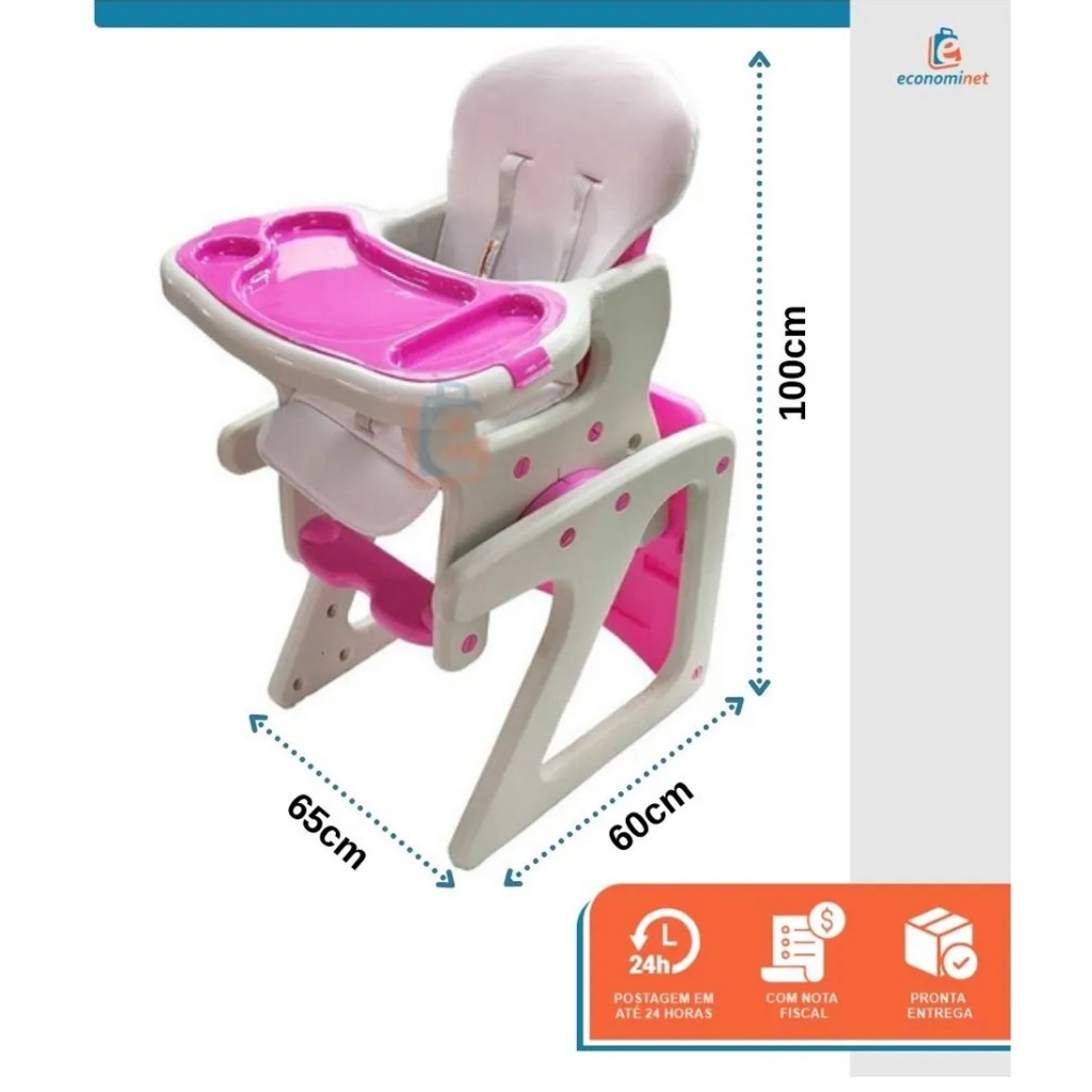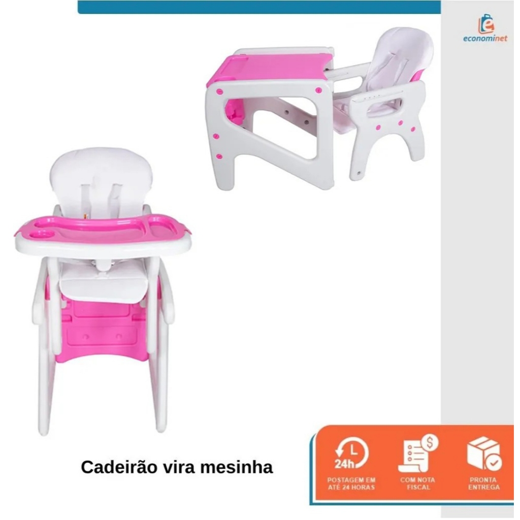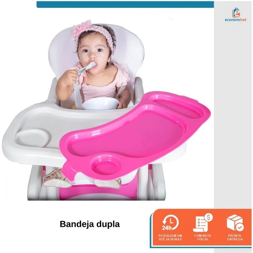 Cadeirão de Alimentação Bebê 2 em 1 Vira Mesinha Cadeira Alta Infantil Refeição com Bandeja Dupla