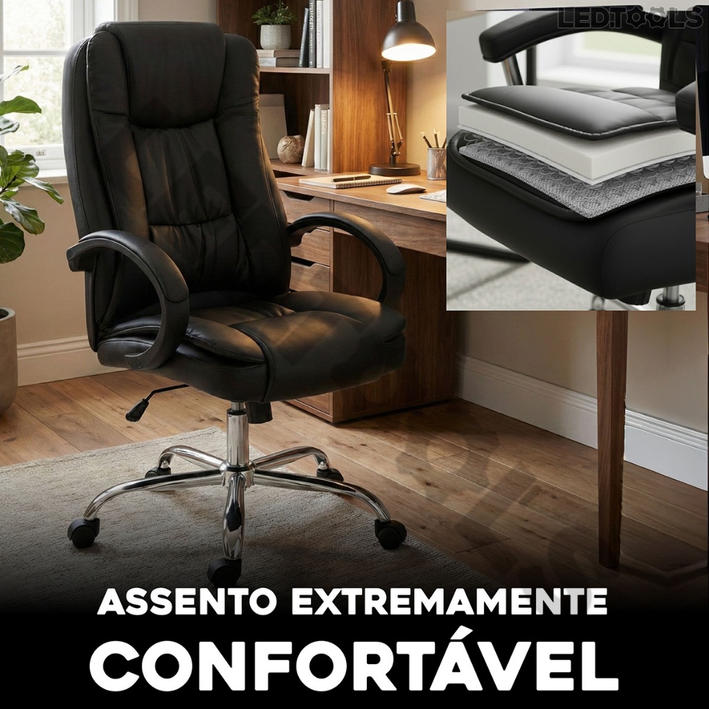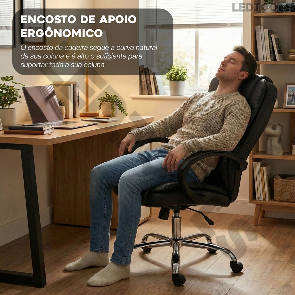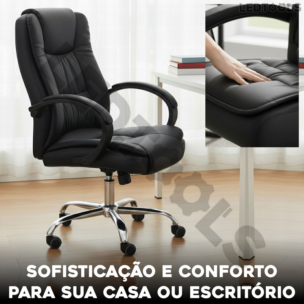Cadeira Executiva Presidente Ergonômica com Altura Ajustável Apoio Lombar e Sistema Reclinável