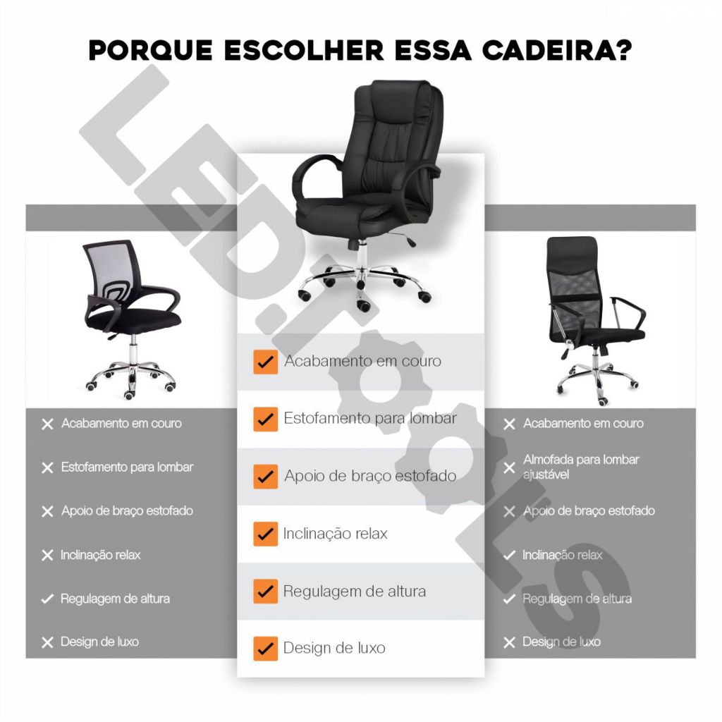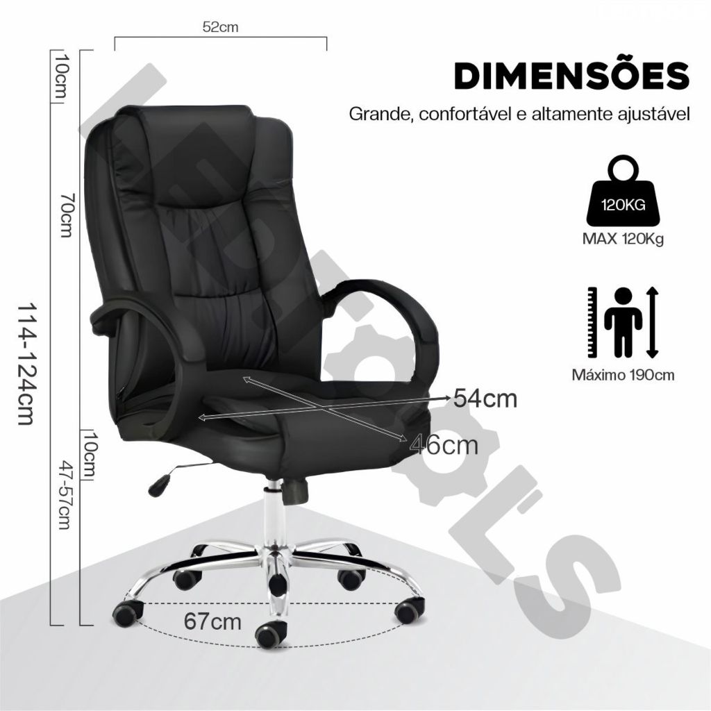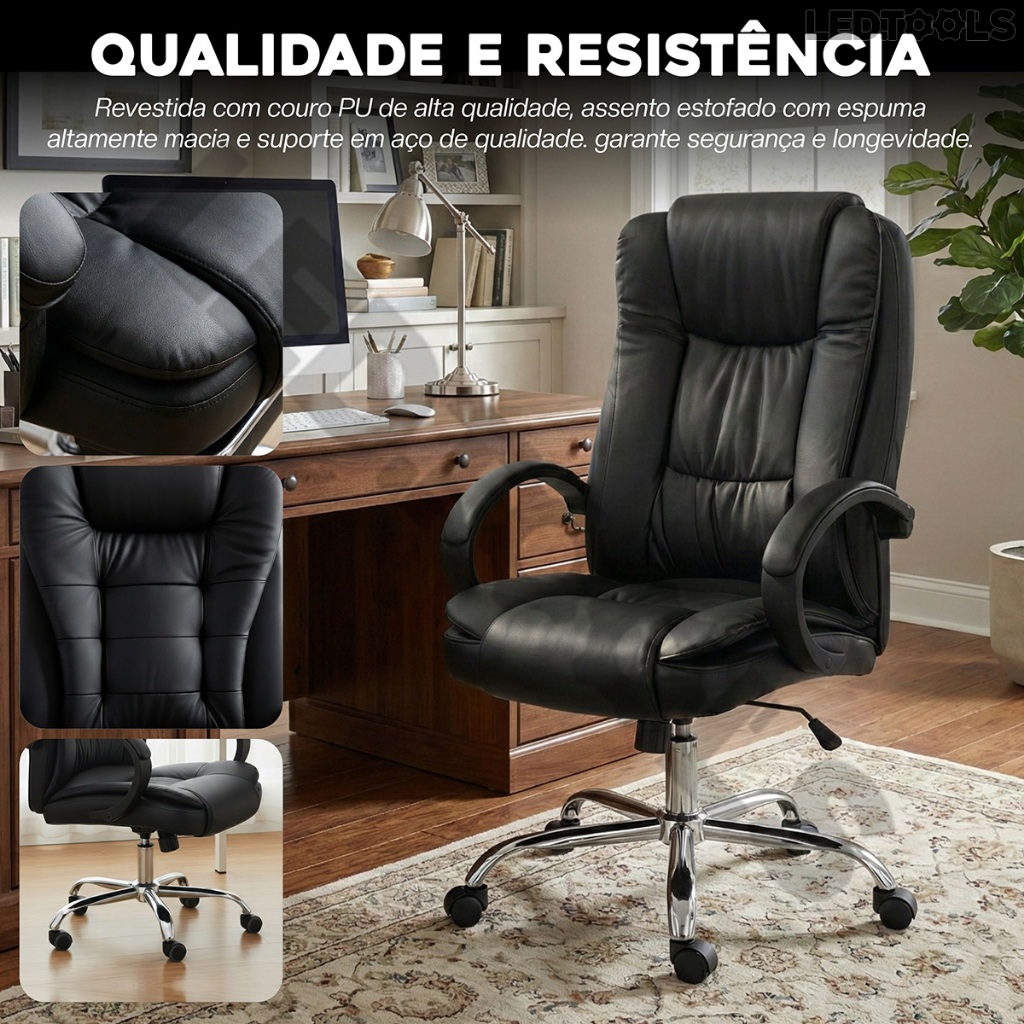 Cadeira Executiva Presidente Ergonômica com Altura Ajustável Apoio Lombar e Sistema Reclinável