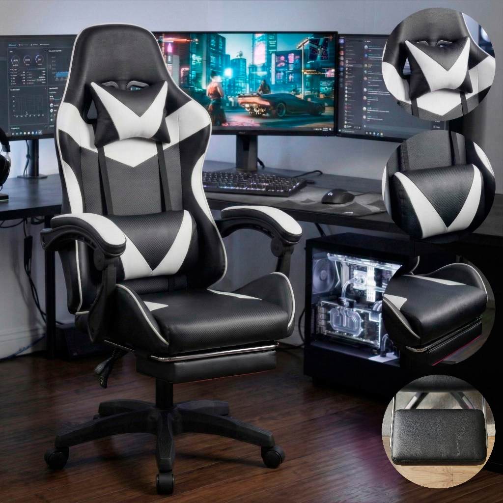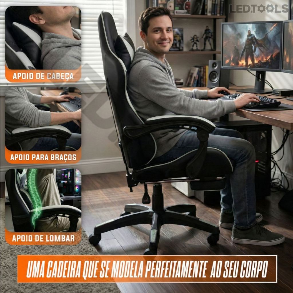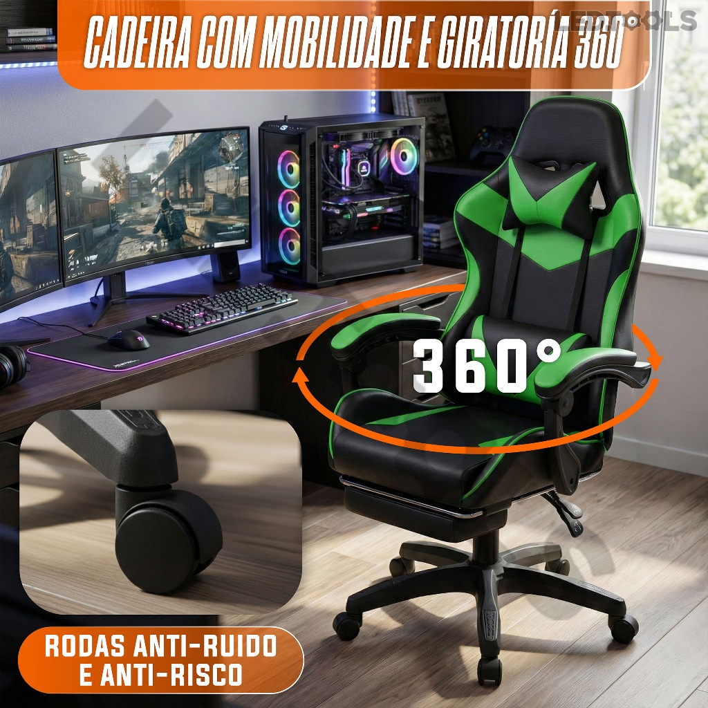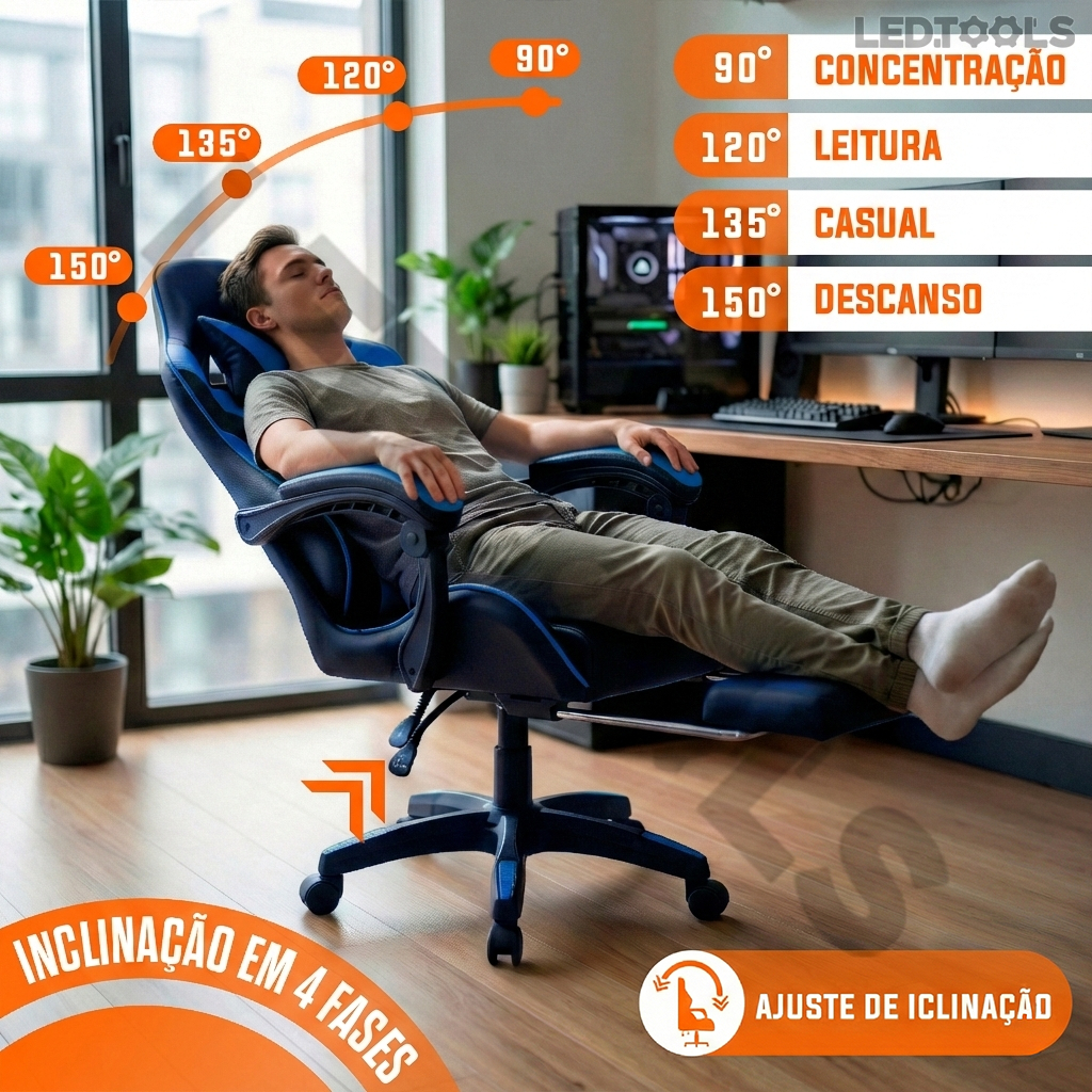 Cadeira Gamer E Escritorio Ergonômica Tecido Em Couro Encosto Regulável Com apoio Para Pés