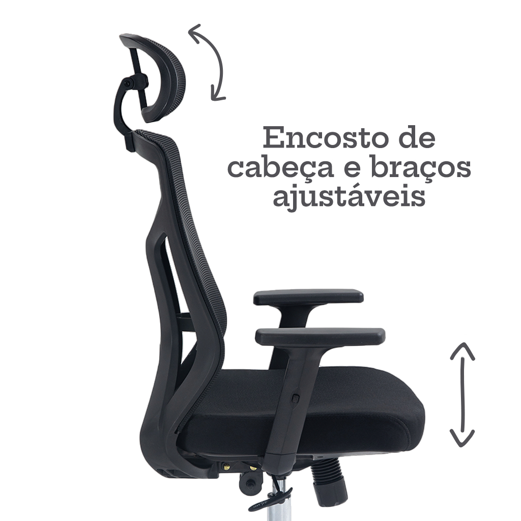 Cadeira de Escritório Diretor Giratória Dr.Office Ergo Pro, Mesh Respirável, Regulagem de Altura, Apoio de Cabeça, Preta