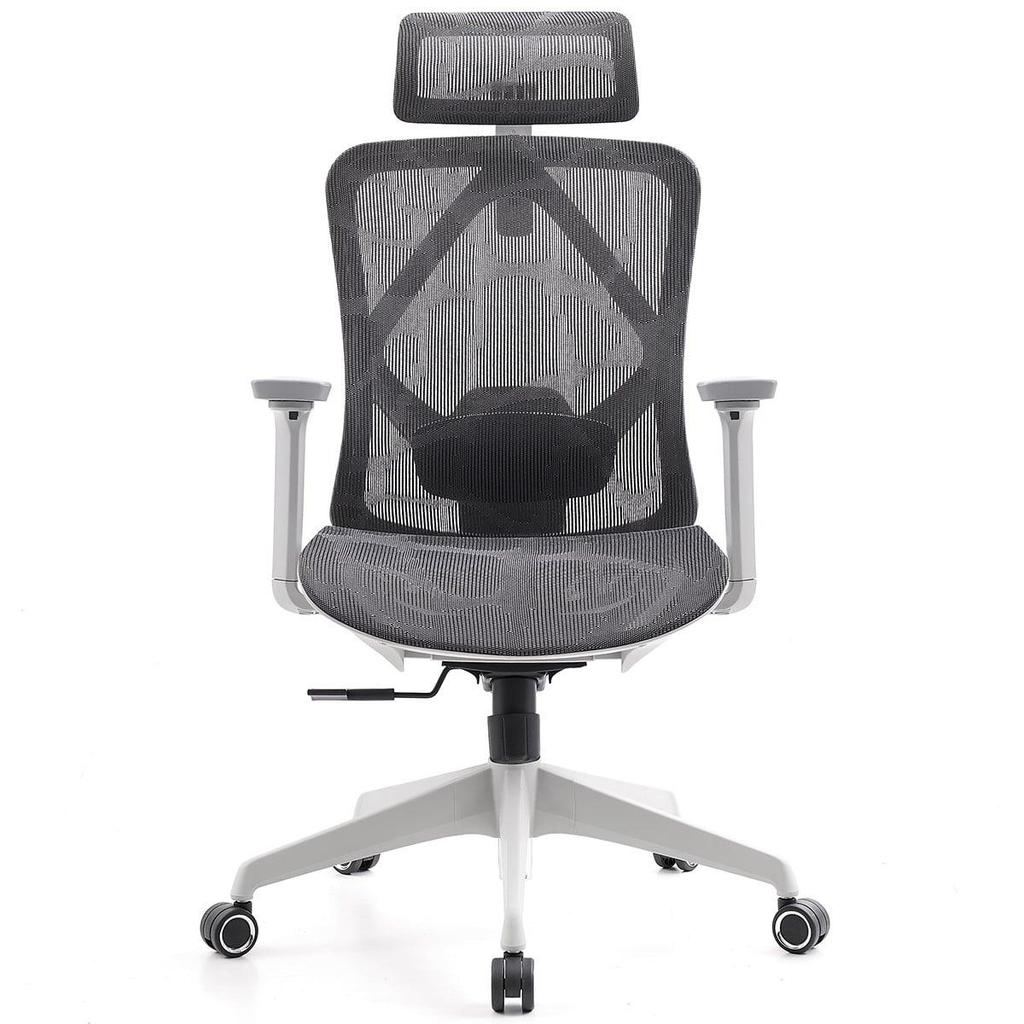 Cadeira de Escritório Dr. Office Ergo, Mesh, 3D, Altura Ajustável, Branco e Cinza, DR-CH-EGR3DWGF