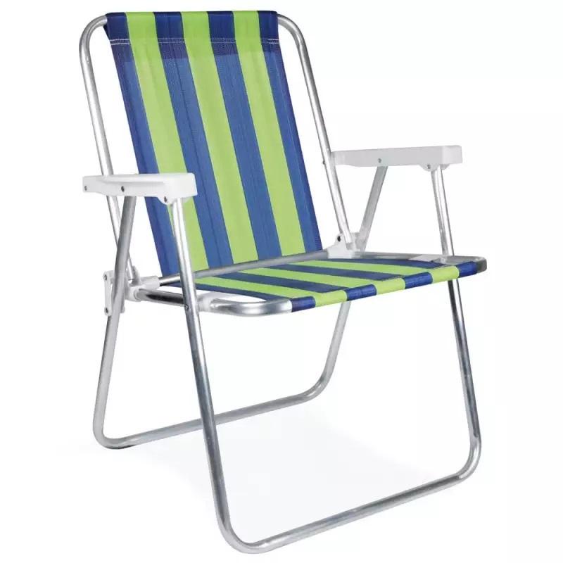 Cadeira de Praia Alta em Alumínio Cores Variadas 2101 + Mesa Portátil Porta Copos MOR