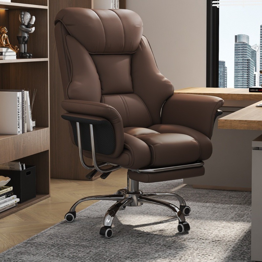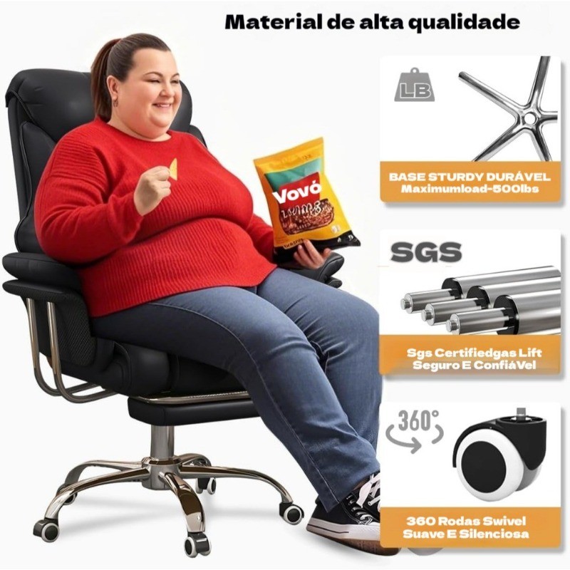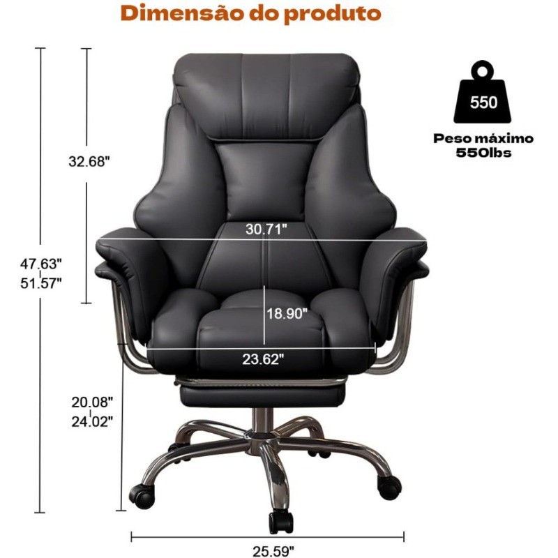 Cadeira de escritório Ultra larga com encosto alto e pedais retráteis e cadeira administrativa de couro com altura ajust