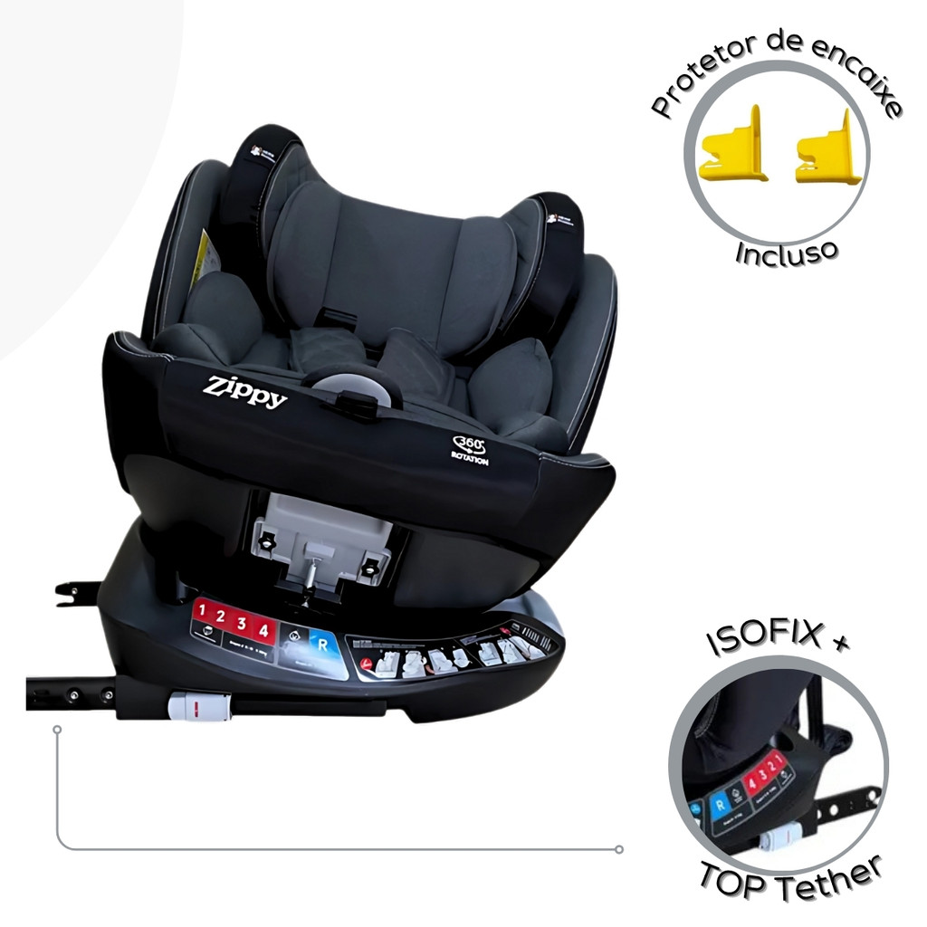 Cadeirinha de Carro para Bebê com Cinto de Segurança Giro 360° Conforto em Couro ou Tecido