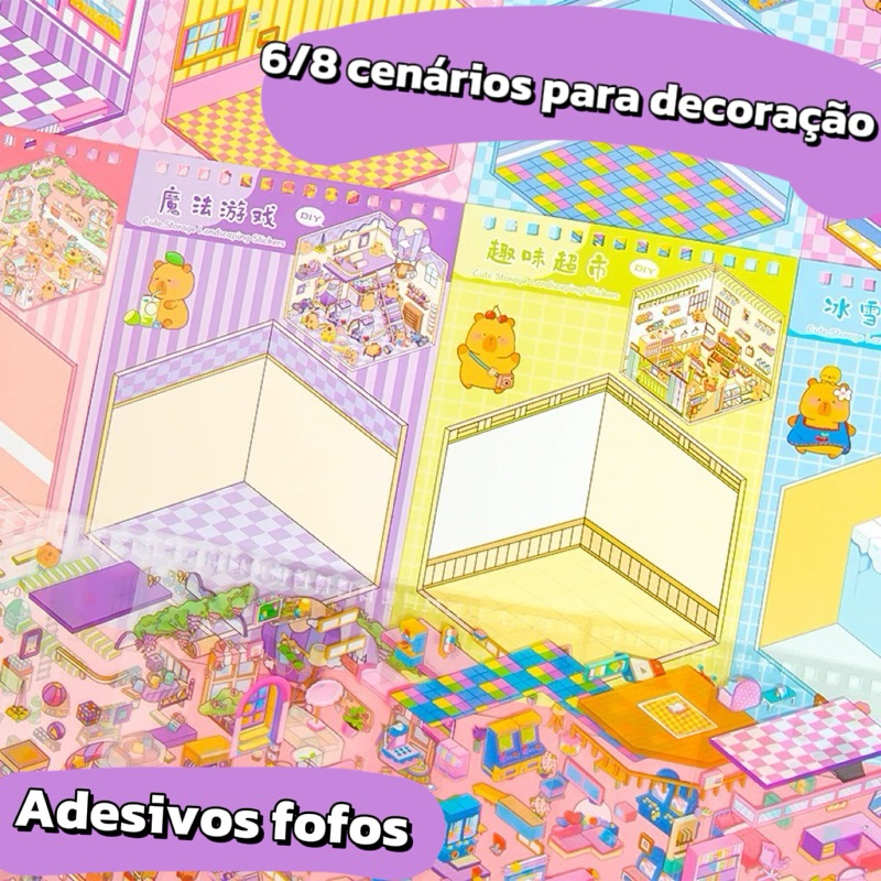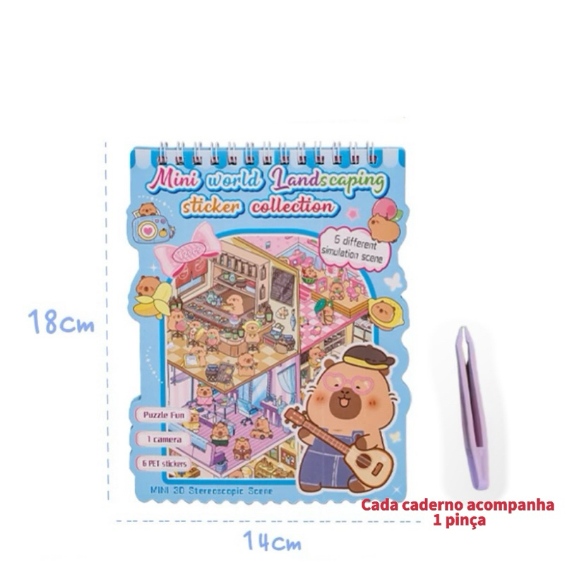 Caderno Adesivos Capivara Cenários para montagem com Pinça - livro interativo para Montar e Decorar