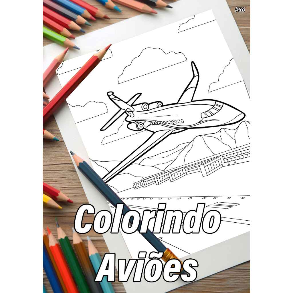 Caderno Com 50 Desenhos Para Colorir Aviões - Tamanho A4 (21x29,7cm) #86