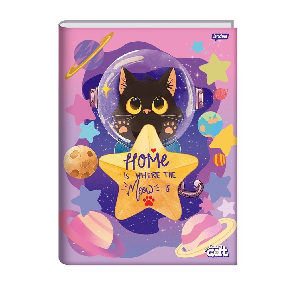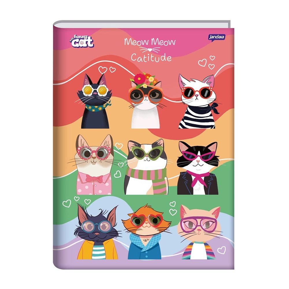 Caderno Costurado Jandaia Universitário Capa Dura Funny Cat 80 Folhas - Embalagem com 5 Unidades Sortidas