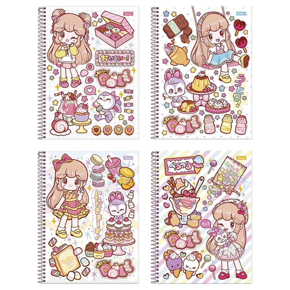 Caderno Espiral Foroni Universitário Capa Dura Doll 10m 160 Folhas - Embalagem com 4 Unidades