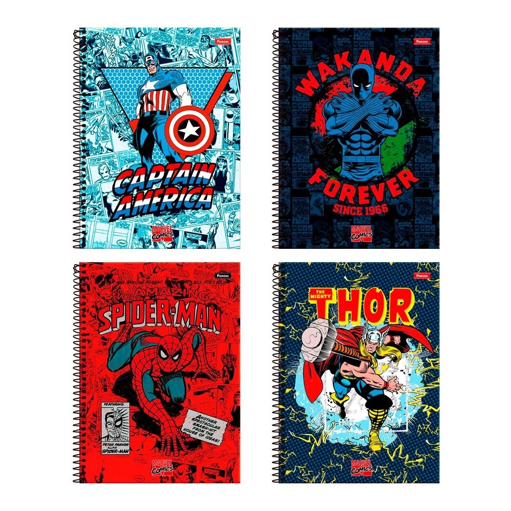 Caderno Espiral Foroni Universitário Capa Dura Marvel 1 Matéria 80 Folhas - Embalagem com 4 Unidades