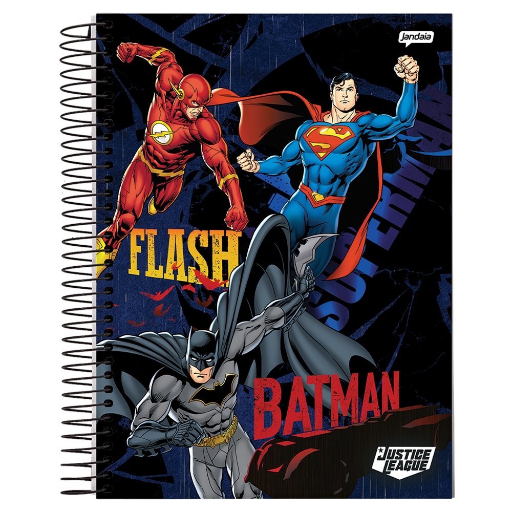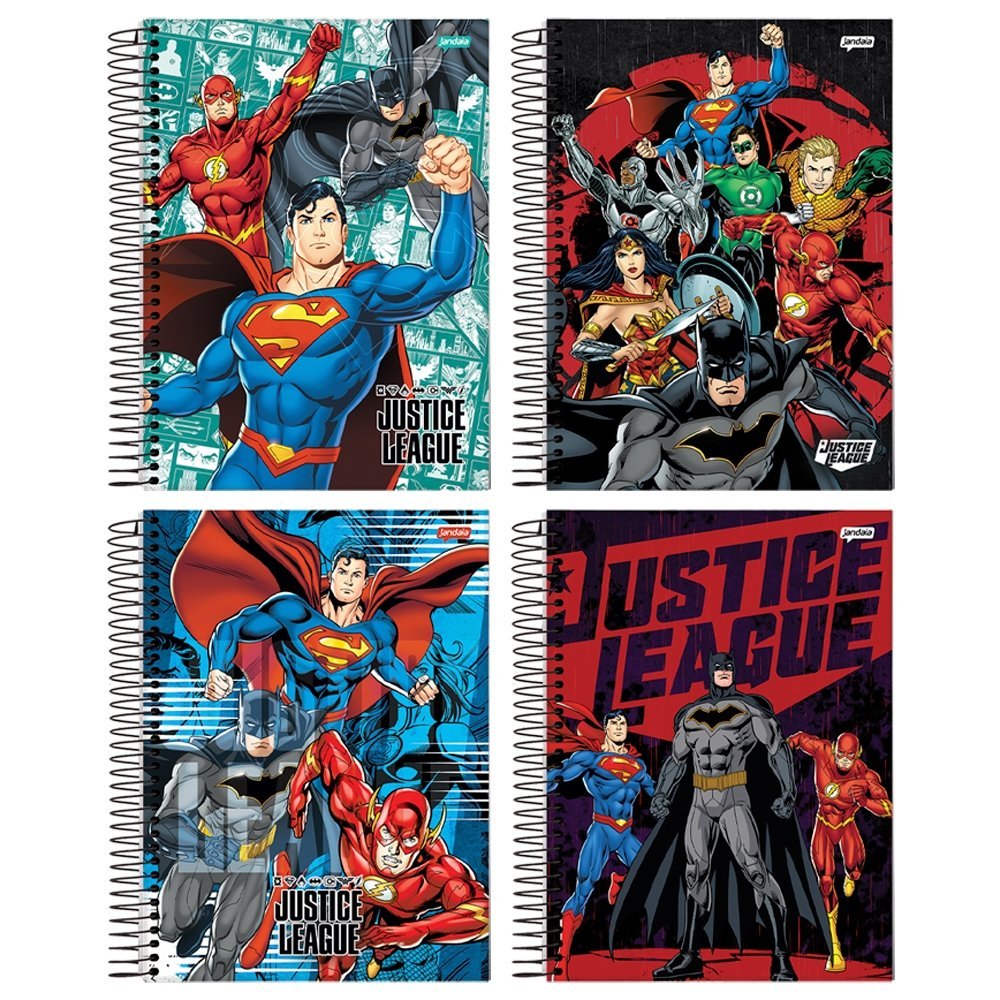 Caderno Espiral Jandaia Universitário Capa Dura Liga da Justiça 1 Matéria 80 Folhas- Embalagem com 4 Unidades (Sortidos)