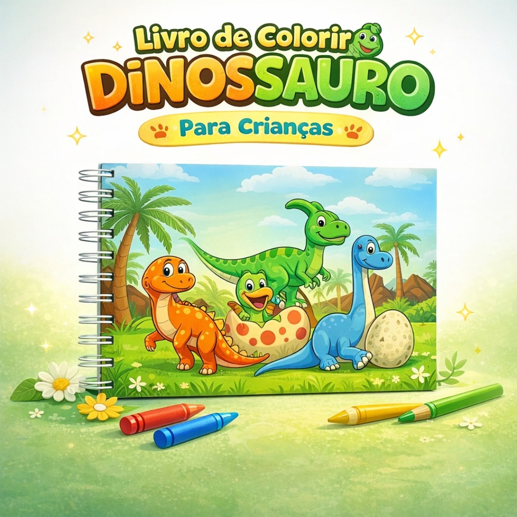 Caderno Infantil de Desenho Tema Dino, Presente Educativo para Crianças