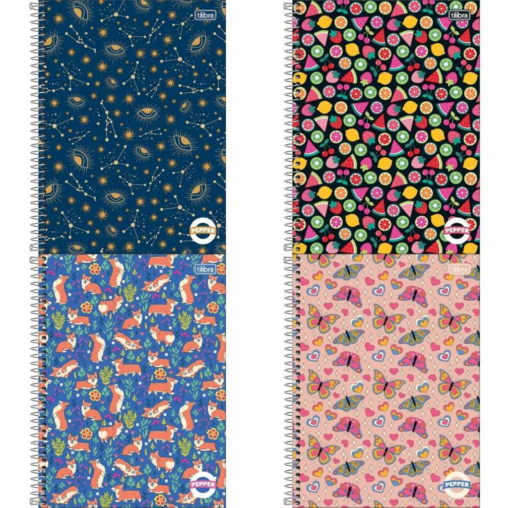 Caderno Tilibra Feminino E Masculino 10 Matérias 160 Folhas 20X27,5CM Capa Dura Multicolorido Pepper