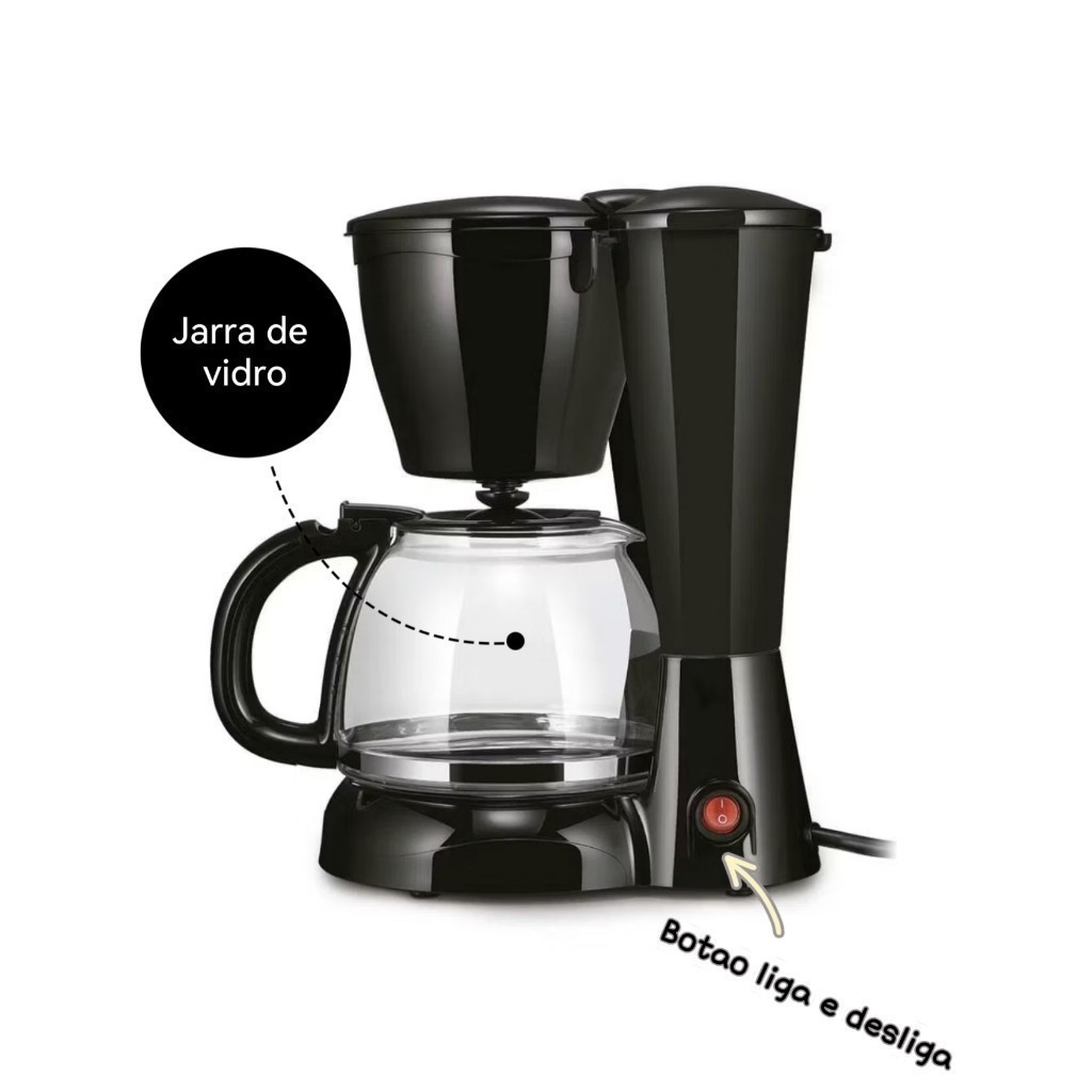 Cafeteira Eletrica 127V Preta 15 Ou 30 Xícaras Café 600ml ou 1200ml 550W E 800W Indicador de Nível