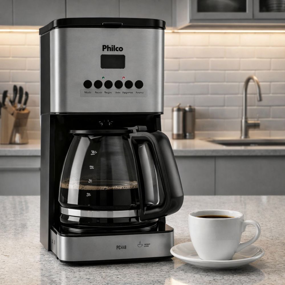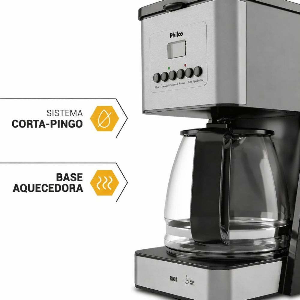 Cafeteira Philco PCF40B 40 Cafe 1000W com Painel Digital Timer 24h Jarra de Vidro Preto com Inox