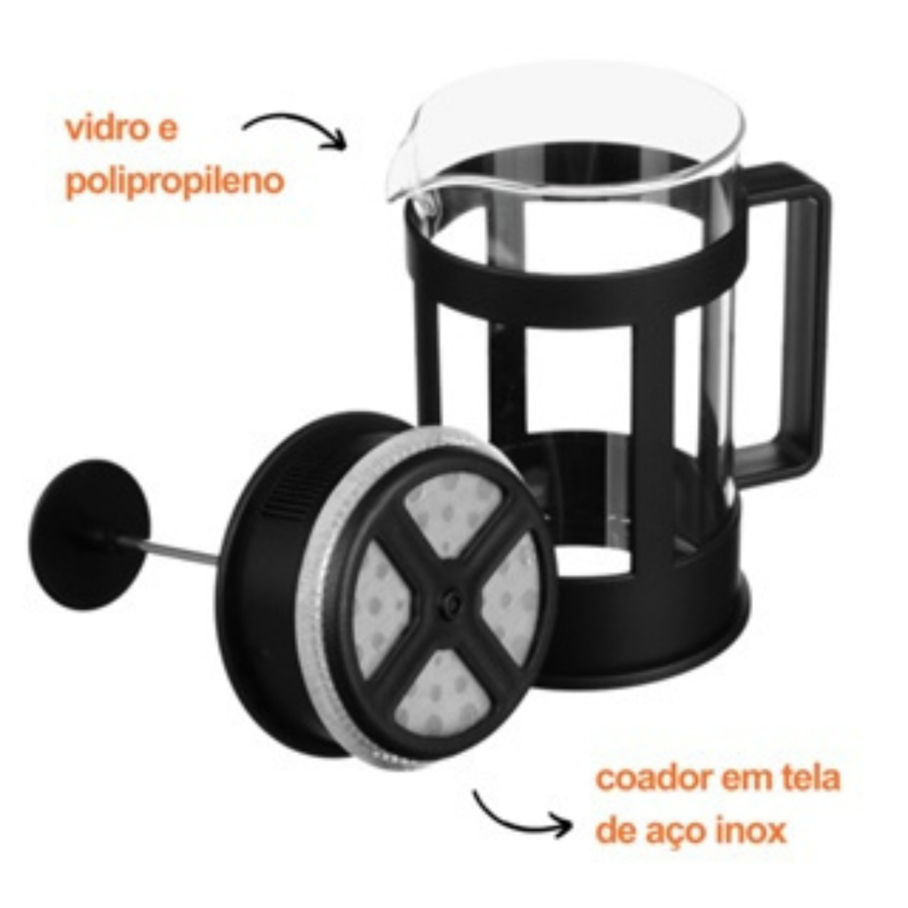 Cafeteira Prensa Francesa De Vidro Com Tampa Preta 350ml
